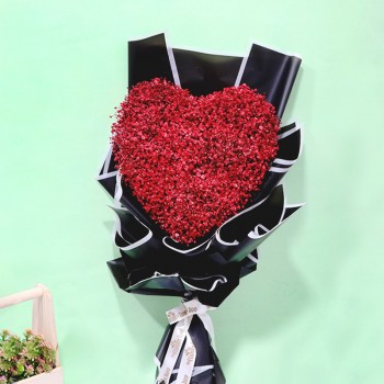 – Heart Shape Arrangement of Red Gypsy Bouquet with Black Paper Packing