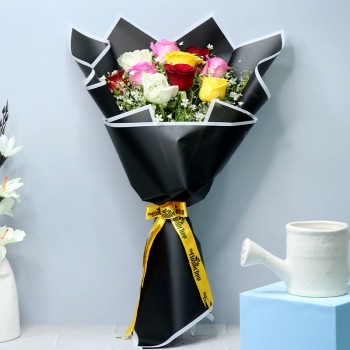 10 Mix Roses Bunch Wrapped in Premium MFT Signature Black Sheets