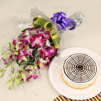 Capture the heart of your loved one with this exquisite and unusual bouquet of 6 Orchids. This exotic bouquet paired with a flavorful 1/2 Kg Butterscotch Cake is enough to create memories that would last for a lifetime.