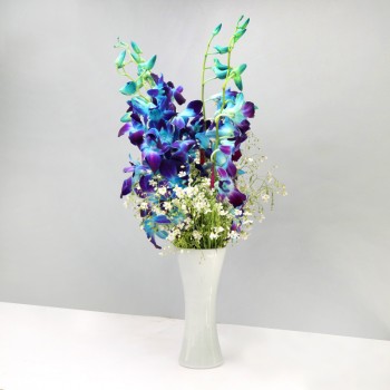 Blossoming in Purple, this bunch of Orchids arranged in a glass vase will make feel someone special. Send this cheerful bunch of 5 Blue Orchids to make someone’s day special.