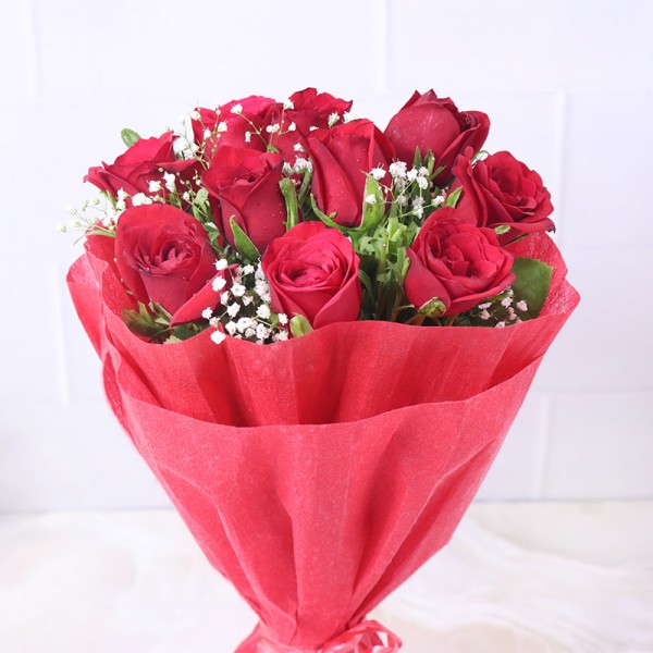 Let someone know how much you adore them with this sweet and simple token of love. This Bunch of 10 beautiful Red Roses, wrapped in paper, is enough to say that one is adored.